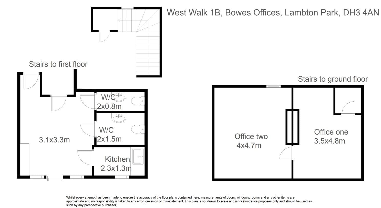 - First Floor office space, comprising of two rooms, shared WC and shower with accessibility