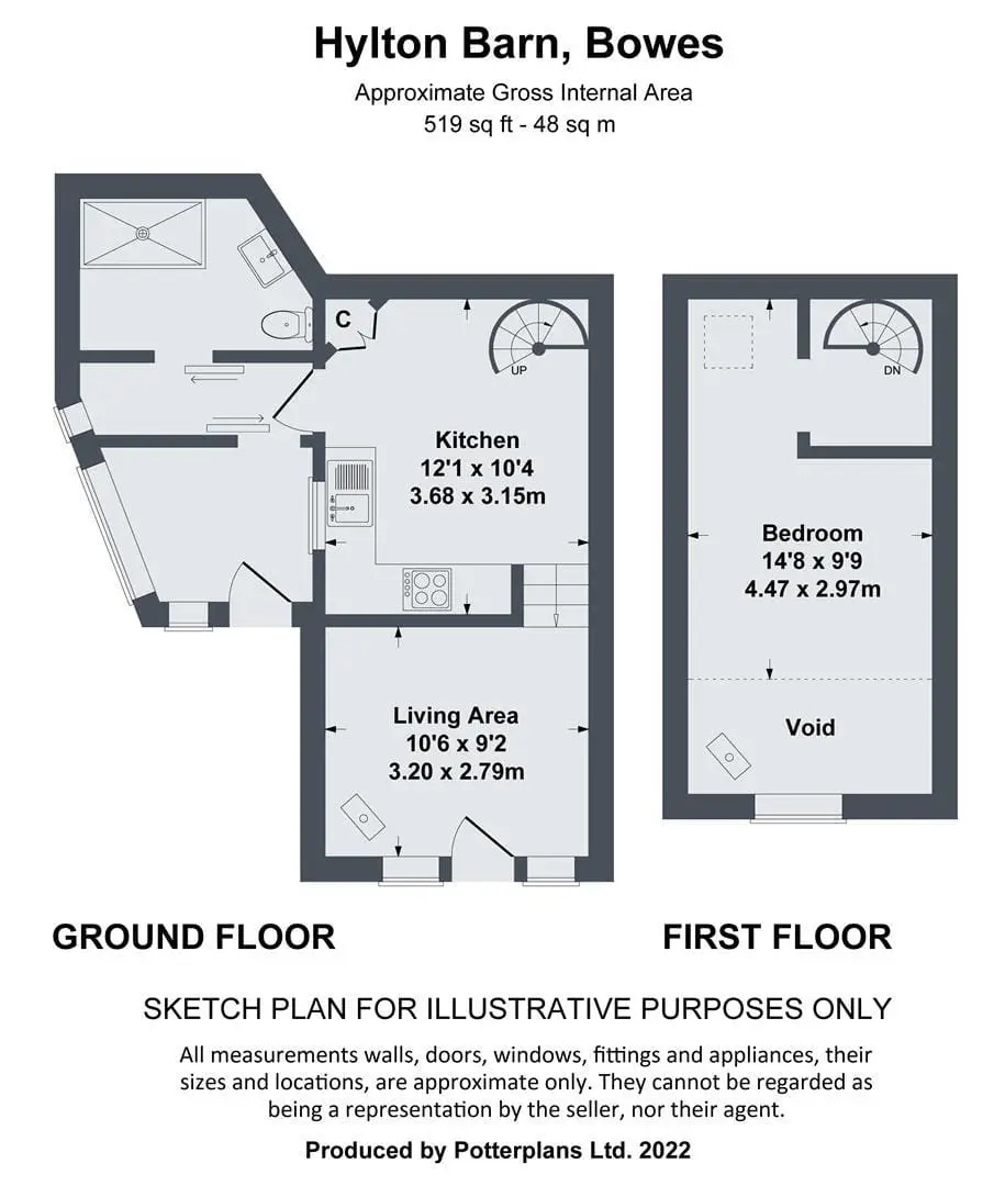 Hylton Barn is a superbly presented one bedroomed barn conversion currently run as a highly successful ‘Holiday Let’, set in the grounds of the historic Bowes Castle. The accommodation comprises entrance hall, open plan living/dining/kitchen, ground floor shower room, spiral staircase to first floor with galleried bedroom. The ground floor of the property has beautiful polished concrete floors and benefits from electric underfloor heating throughout.