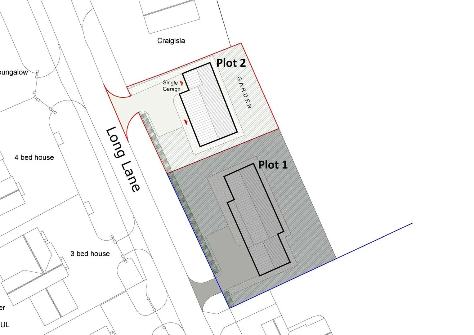 Plot 2, approximately 0.11 acres with an adjacent paddock extending to circa 0.78 acres.