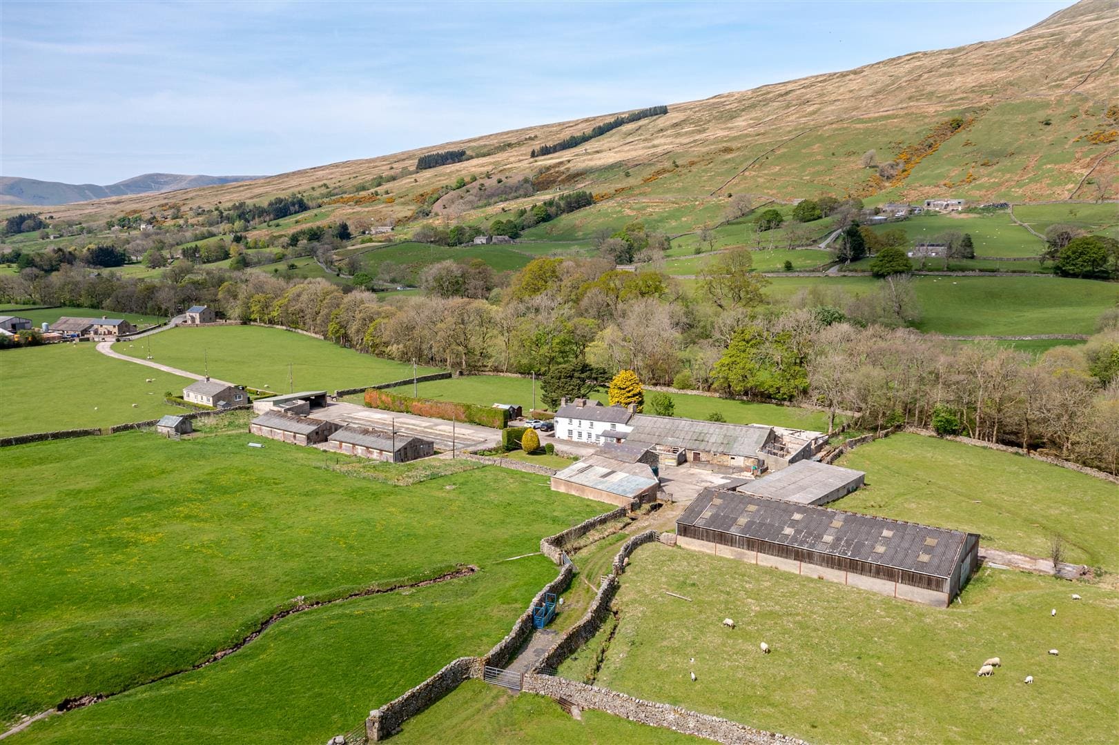 - Steel portal framed lambing shed, redundant pig sheds and useful stone barns and sheds