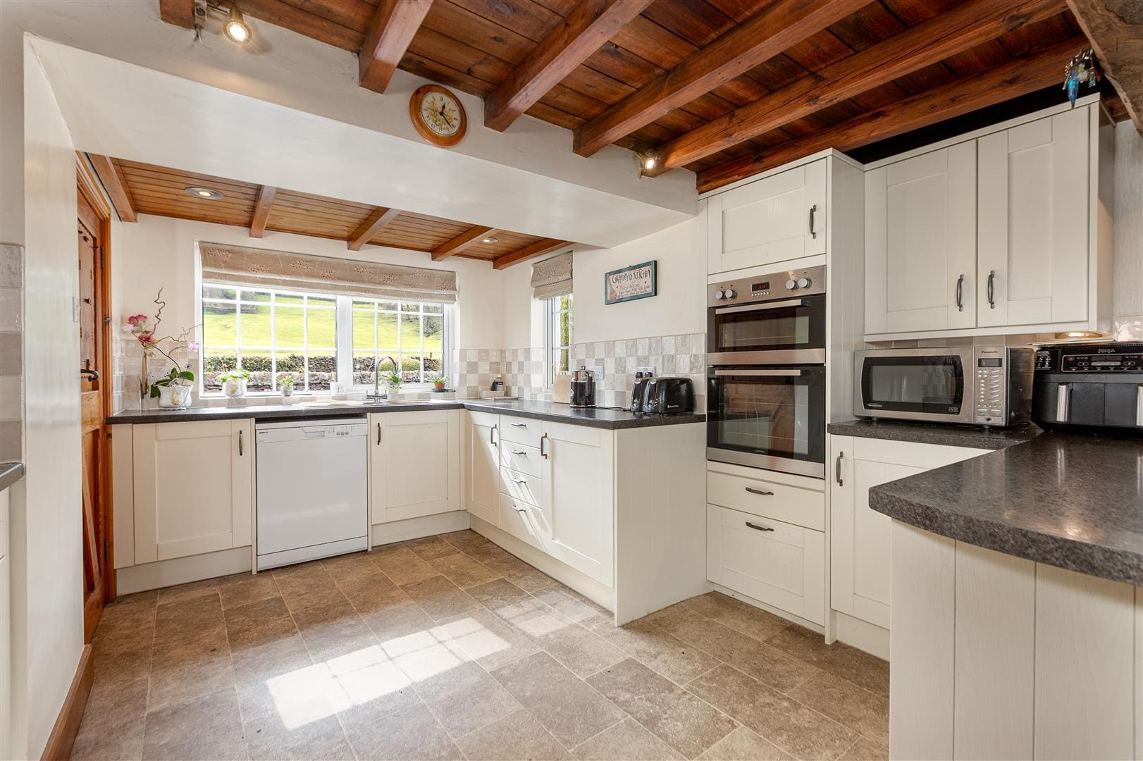 The farmhouse is a delightful, traditional, four-bedroom house built of dressed stone and whitewashed under a pitched slate roof, it provides bright, spacious, and well-presented accommodation.