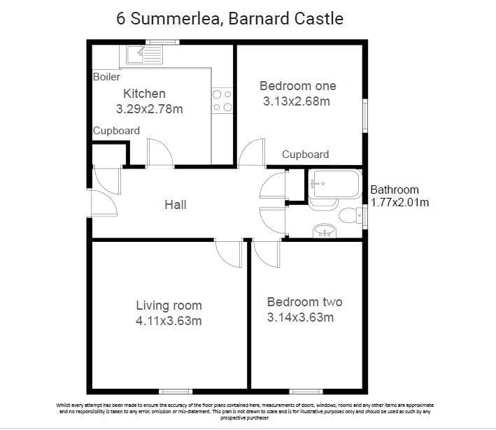 6 Summerlea is a first floor, two bedroom apartment which is well presented and benefits from a central location within the historic market town of Barnard Castle. The accommodation briefly comprises: communal entrance, kitchen, living room, two bedrooms and a bathroom. Externally there is a parking space for one car .