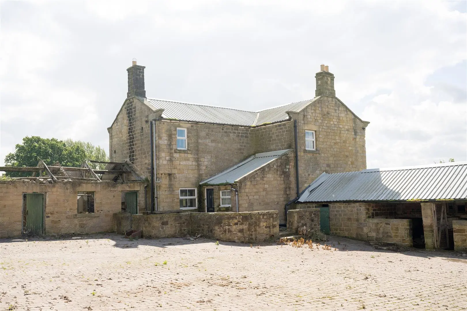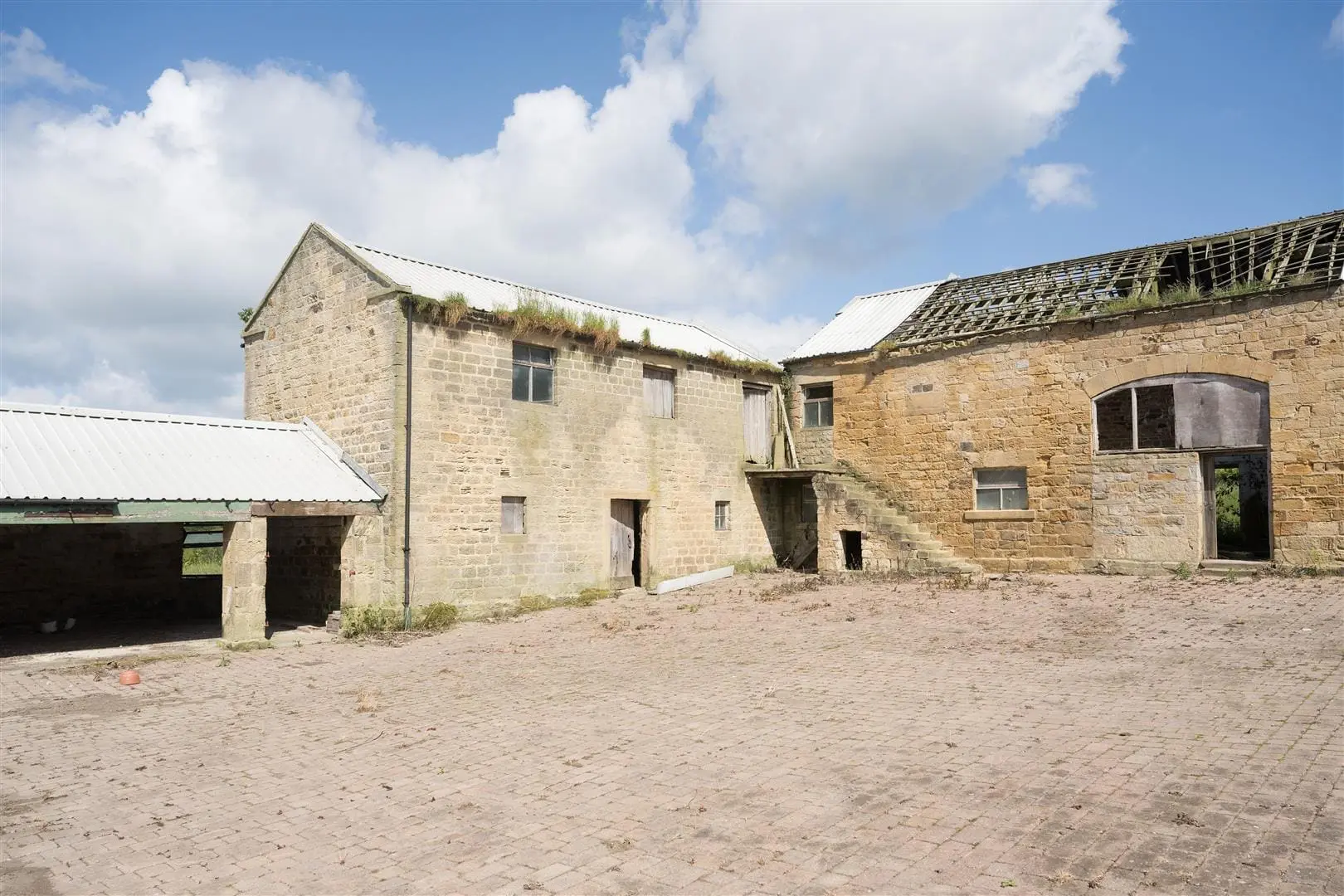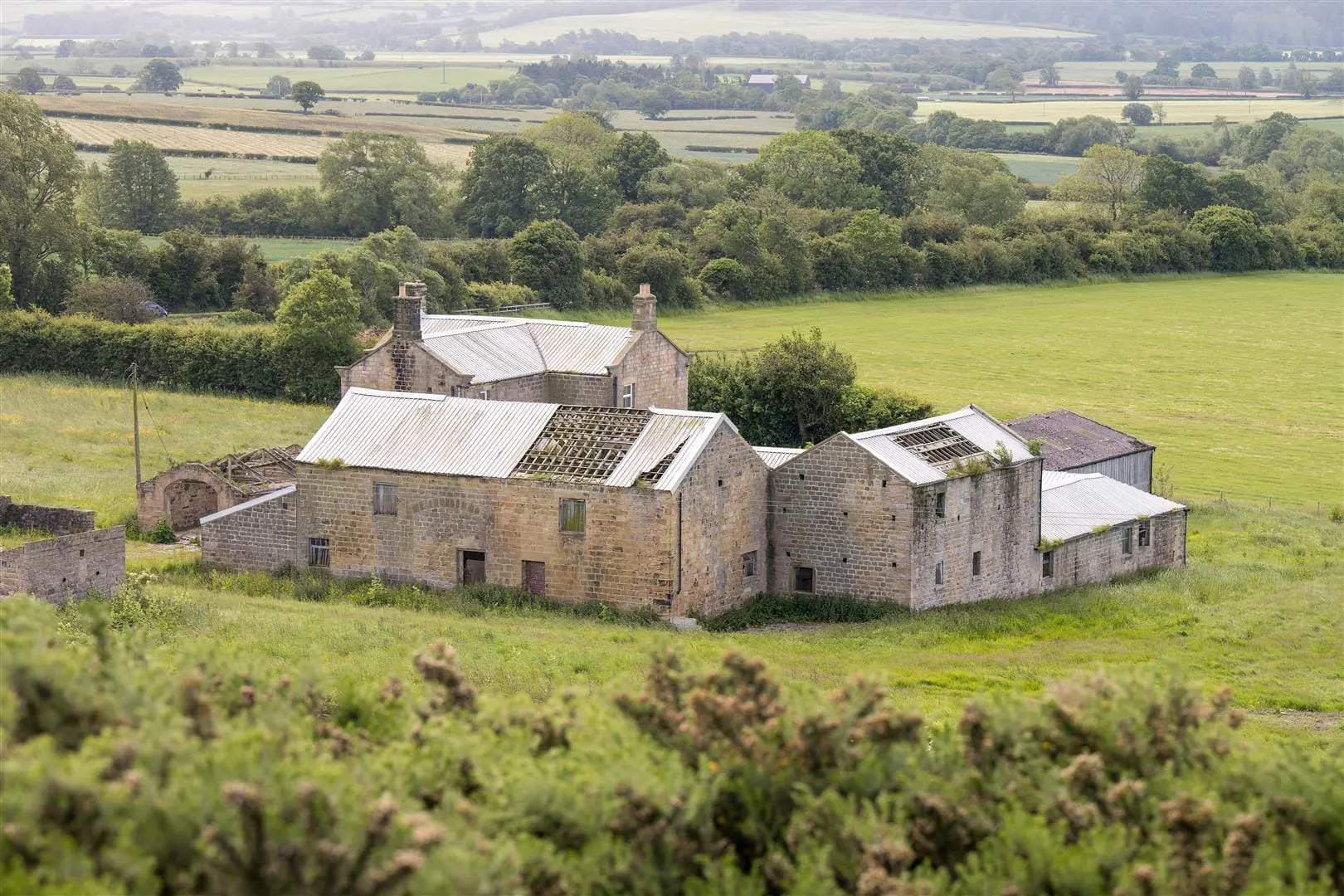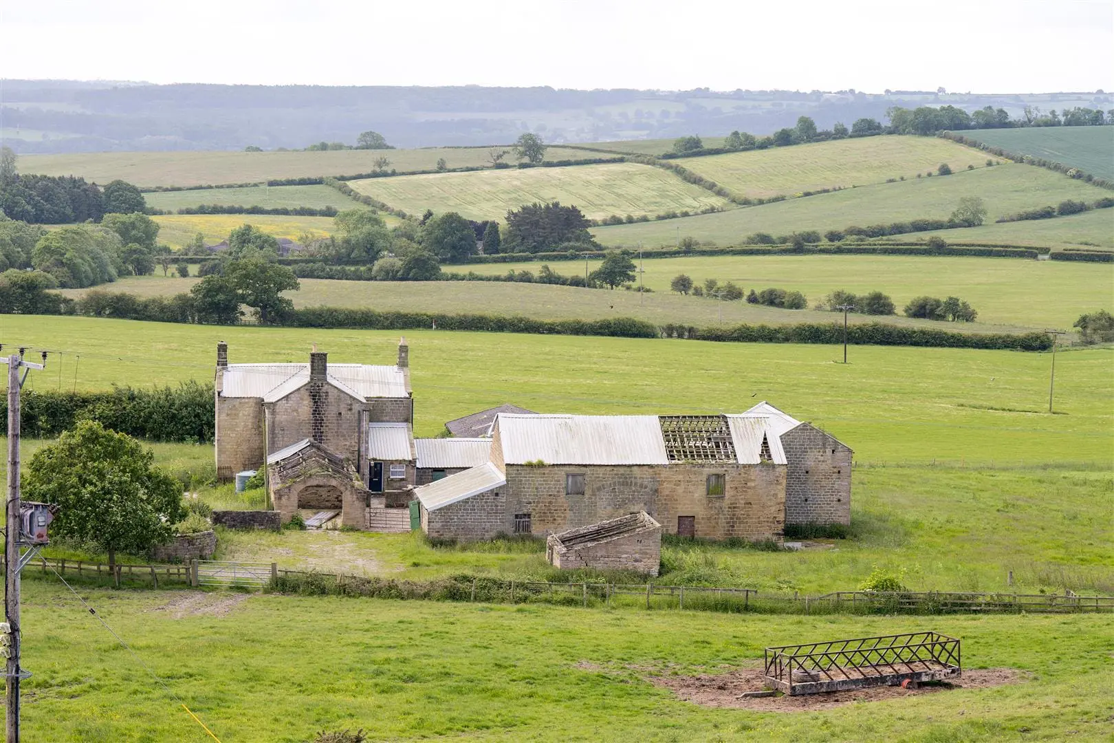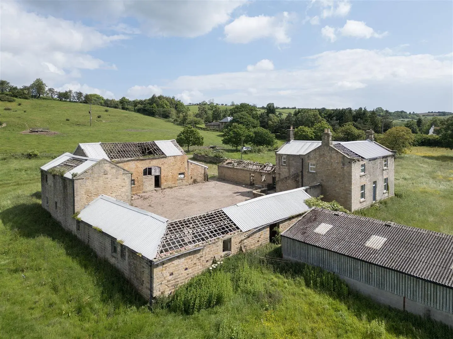 DEVELOPMENT OPPORTUNITY – A substantial range of farm buildings including a 4-bedroom house to modernise/rebuild plus two stone barns with historic permission to convert, plus further buildings with potential, in an enviable 3 acre rural setting south of Harrogate with a lovely southerly outlook and views over Lower Wharfedale. For sale as a whole.
