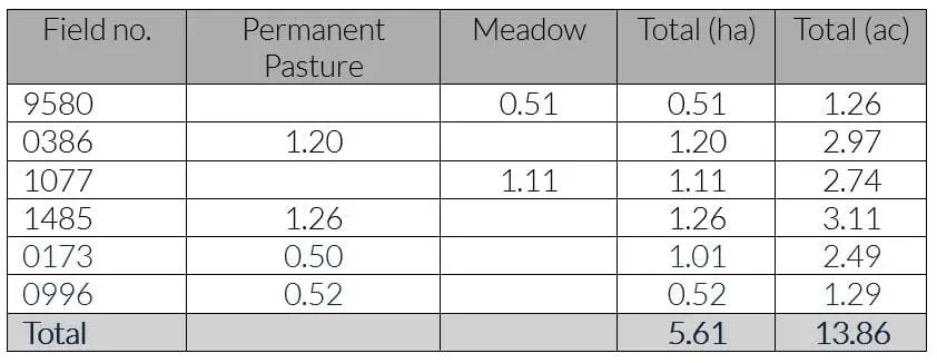 13.86 acres (5.61 hectares)